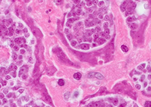 În centrul acestei imagini: celule tumorale maligne transmise la om prin intermediul unui vierme parazit.